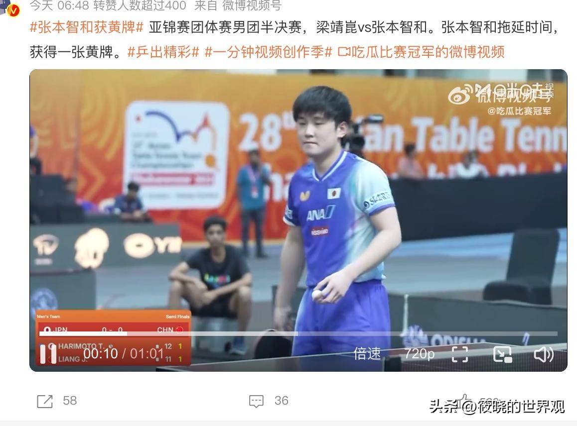 在首盘与中国选手梁靖崑的比赛中,张本智和多次刻意放慢节奏。他时而慢悠悠地绕场捡球,时而反复擦拭干净的球拍,甚至整理球衣也能拖延半分钟之久,这些举动最终让他遭到了裁判的黄牌警告。尽管如此,张本智和在艰难险胜梁靖崑后,依然在赛场中央握拳庆祝,甚至指向中国队的替补席,满脸自信,仿佛已经提前捧起了冠军奖杯。