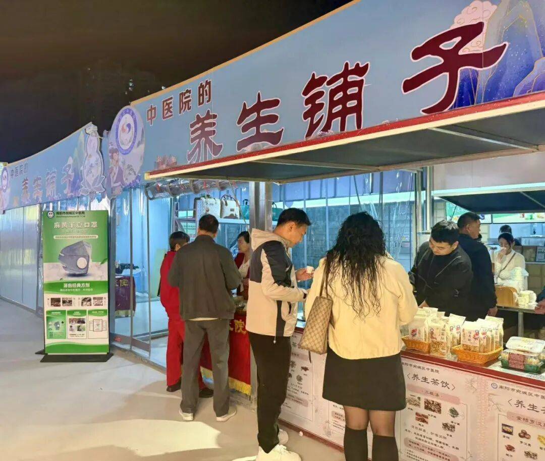 在琳琅满目的摊位中,宛城区中医院设立的养生铺子格外引人注目。这里陈列的“中药口罩”“药膳小吃”“养生茶饮”等中医药健康制品,集中展现了中医药“生活化”的创新实践。