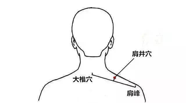 肩井穴在肩部,具体位置是“大椎穴与肩峰端连线的中点处”(简单说就是“肩膀最高处往下一点,脖子和肩膀交界的凹陷附近”),找对“大椎穴、肩峰端”两个关键标志,新手也能一次找准: