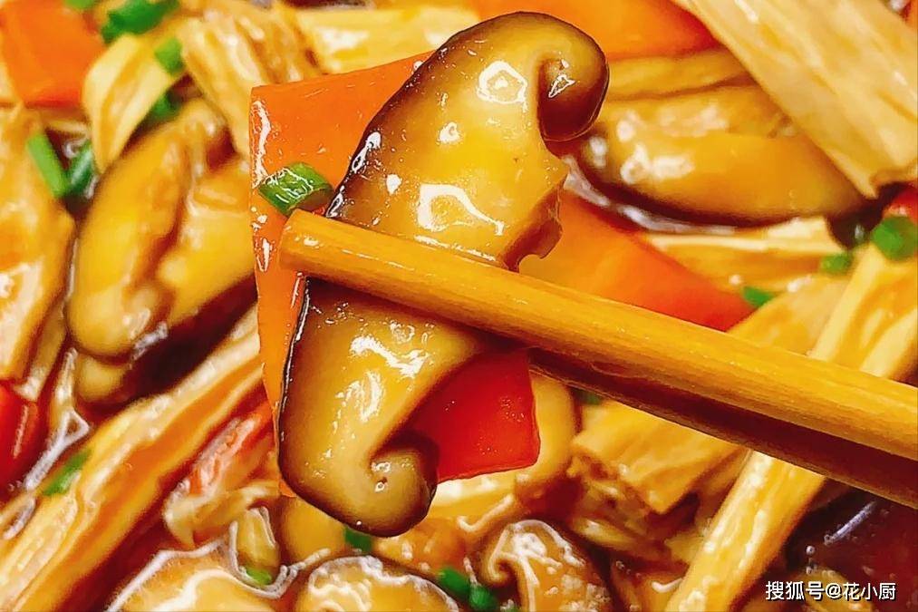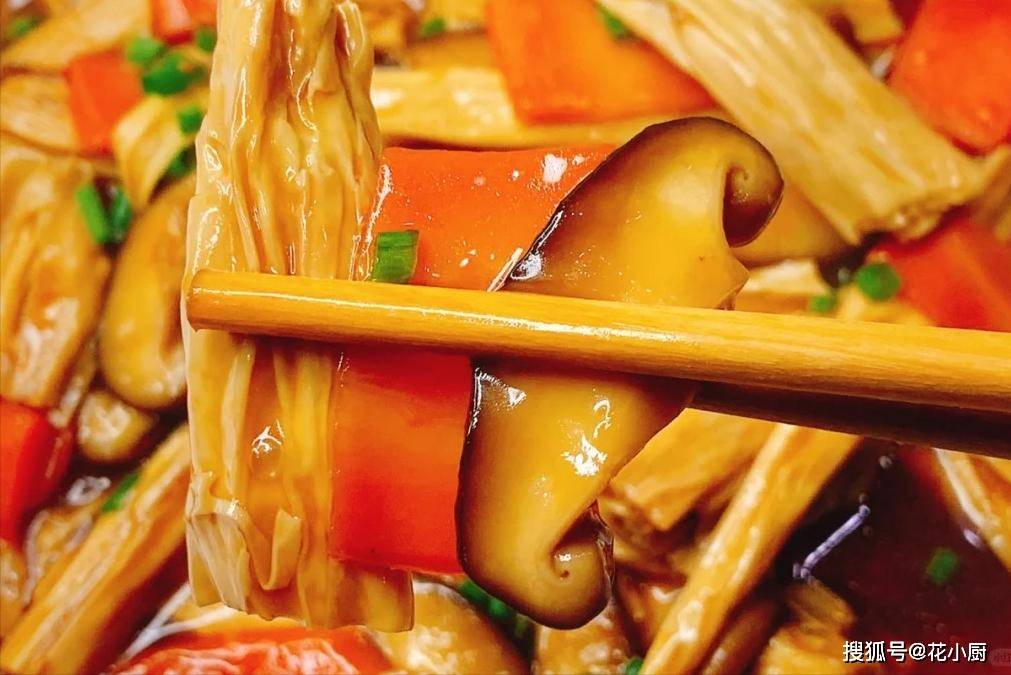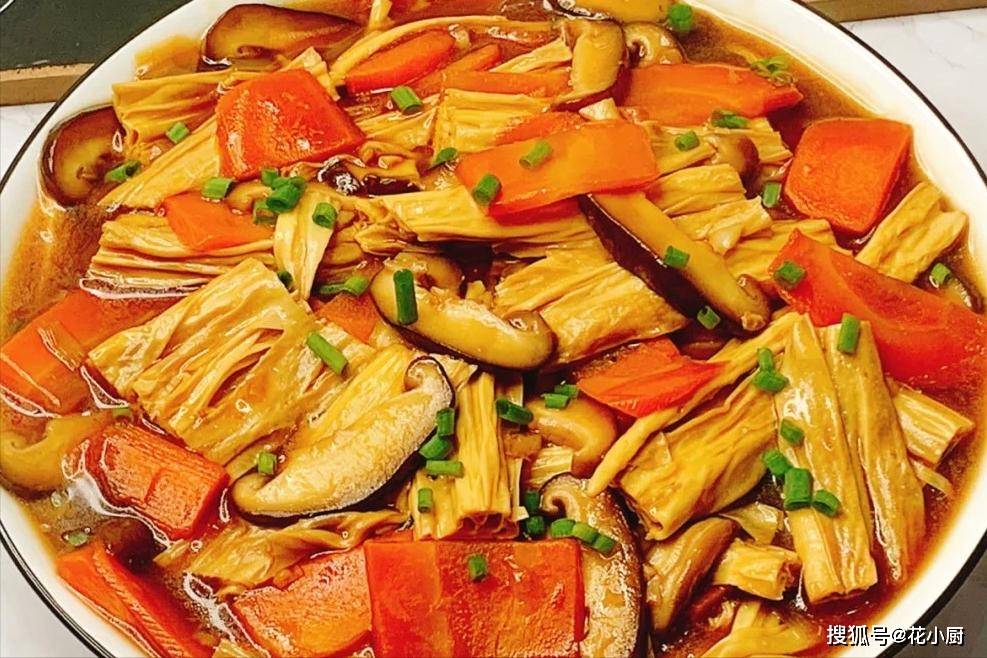分享一道超级好吃的素菜 —— 香菇胡萝卜炒腐竹。你还别不信,这素菜做出来比肉都香,绝对是快手家常菜中的一绝!