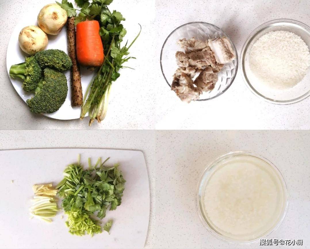 食材:排骨 1 根、山药取 1/3 根、胡萝卜半根、口蘑 2 朵、西兰花一小朵、一把小葱、2 颗香菜、一块生姜。调料也简单,生抽、蚝油、盐就够啦。