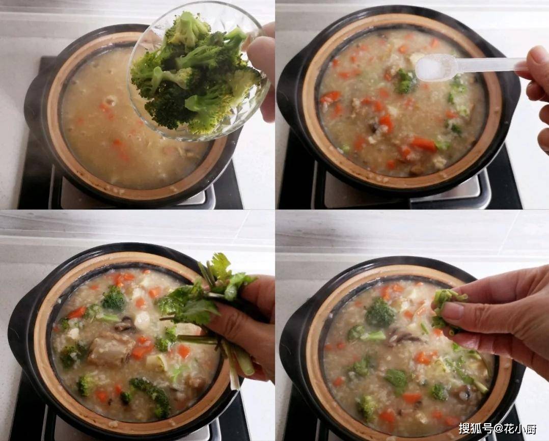 6、10 分钟一到,把西兰花放进去,接着再熬一会儿。