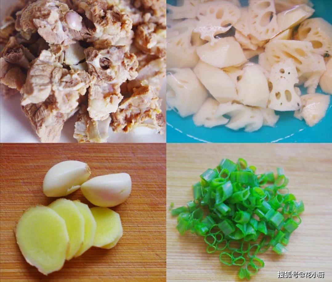 食材:排骨 1 斤、莲藕 1 节、姜片、蒜瓣、50 克红烧酱、葱花