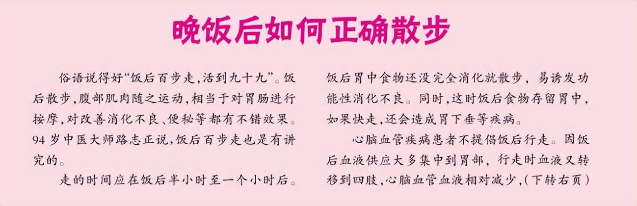 [1]晚饭后如何正确散步[J].心血管病防治知识(科普版),2014,(17):48-49