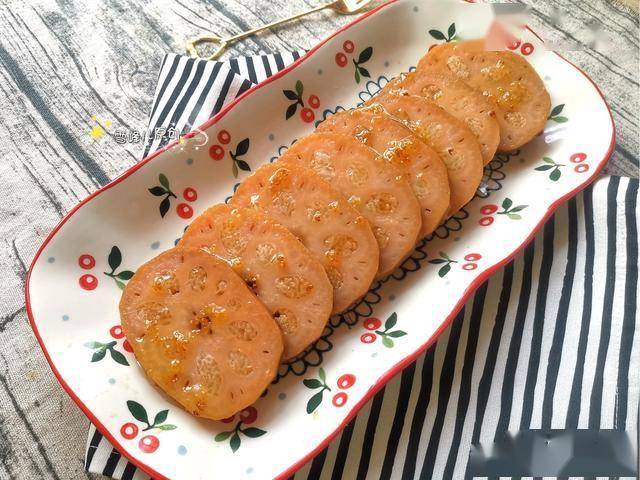 第二步:把处理好的莲藕放入电饭煲中,加入少许大红枣,再加入适量的红糖,选择煮粥煎,焖熟,充分焖熟之后,放到锅里继续泡着,让莲藕充分入味,拿出莲藕,用刀切成厚片,放入盘中,淋上糖桂花即成。