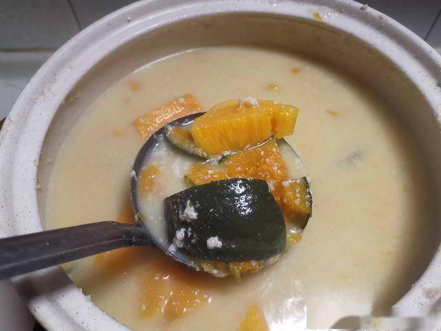 第二步:花生倒入料理机,加水打成花生碎,倒入锅里加入南瓜块大火烧开,改小火煮到花生软烂即可加盐调味,上桌即成。