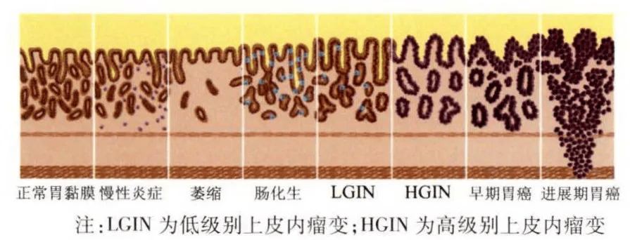 肠化生进一步发展,可出现上皮内瘤变(异型增生),是更重要的胃癌前病变。低级别上皮内瘤变大部分仍可逆转,较少发生恶变,而高级别上皮内瘤变有明显的恶变倾向。