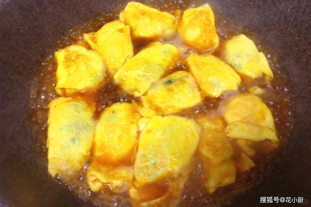 把调好的酱汁倒进锅里,让蛋卷泡在酱汁里,盖上锅盖焖煮一会儿。这焖煮的过程可太关键了,酱汁的味道会慢慢渗进蛋卷里,让它变得更加入味。