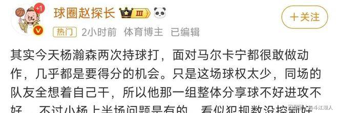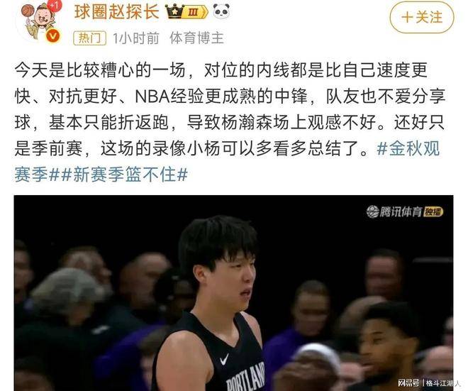 媒体分析指出,爵士中锋速度快、对抗强、经验丰富,而杨瀚森在这些方面明显不足,却还坚守“苦活”,自然表现受限。队友在进攻中不传球给他,使得他机会有限,两次面对马尔卡宁的进攻差点得分,但球权不足,无法延续表现。NBA强调数据,体力、速度与对抗差是问题,但最关键的仍是犯规太多导致出场时间碎片化,状态无法持续。