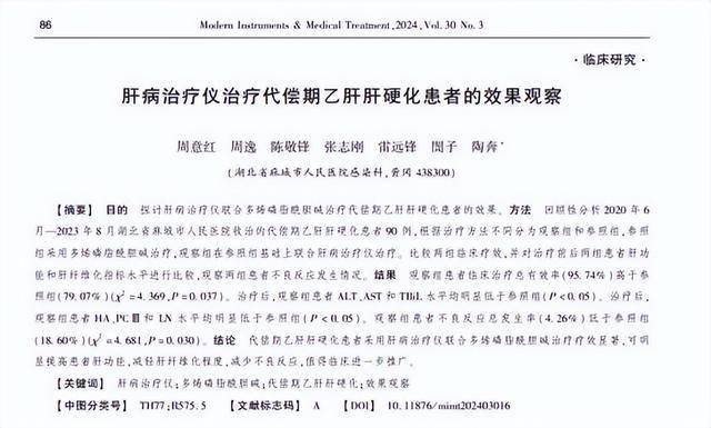 [1]周意红.肝病治疗仪治疗代偿期乙肝肝硬化患者的效果观察 ,现代仪器与医疗,2024-06-25