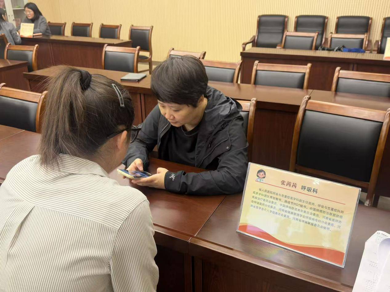 理论讲座结束后,备受期待的义诊环节随即展开。来自河南省人民医院首席专家、脊柱病中心主任医师高延征,消化内科主任医师、教授李修岭,全科医学科副主任、主任医师王勇,妇科计划生育亚专科主任、主任医师王英芳,呼吸与危重症医学科副主任医师张茜茜,以及健康管理学科主任医师朱娜、主治医师任中豪组成多科义诊团队,现场聚焦职工健康问题,将专业知识科普与贴心医疗服务相结合,为职工们提供了一对一的报告咨询、阅片诊断、号脉问诊等健康服务。