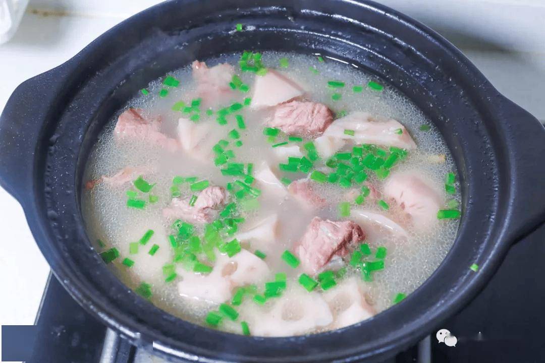 5、煮好之后汤色就是奶白色的,特好别好看,而且很鲜,很好喝的哟。秋天多喝一些汤,缓解秋燥又滋补。最后可以来一把小葱点缀一下,更有食欲。