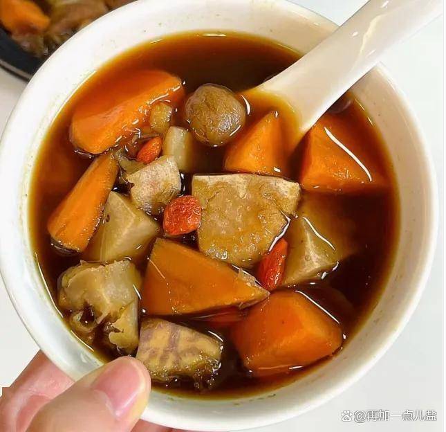 霜降后的夜越来越长,我总爱煮上一锅甜汤,装在保温壶里。加班回家喝一口,凉掉的汤重新热一下,红薯绵软得入口即化,芋头粉糯得像在嘴里跳舞;周末赖床时,盛一碗端到床上,看热气模糊了窗户,连阳光照进来都变得温柔。