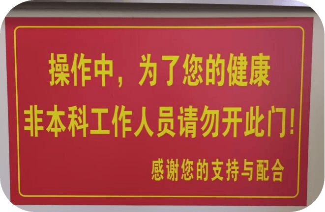 1、放射科设备间内为高压、辐射场所,为了您的健康,未得放射科医师邀请,请勿随意开门入内。