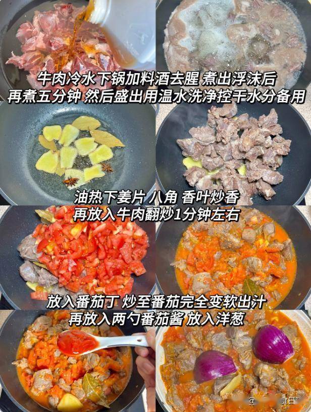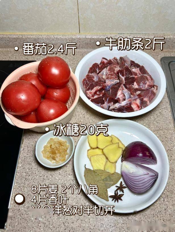 材料:适量番茄,适量牛腩,20克冰糖,半个洋葱,2个八角