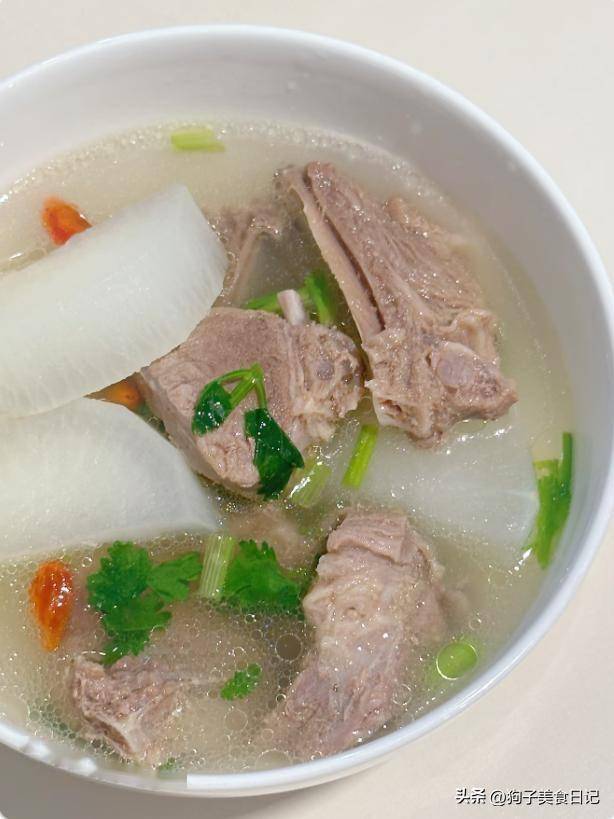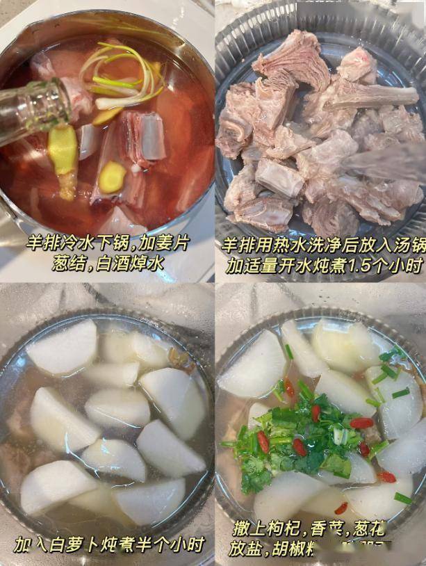 材料:羊肉,白萝卜,枸杞,香菜,葱花,盐,胡椒粉。