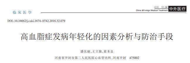 [1] 潘庆丽,高血脂症发病年轻化的因素分析与防治手段,中外医疗,2016-11-11