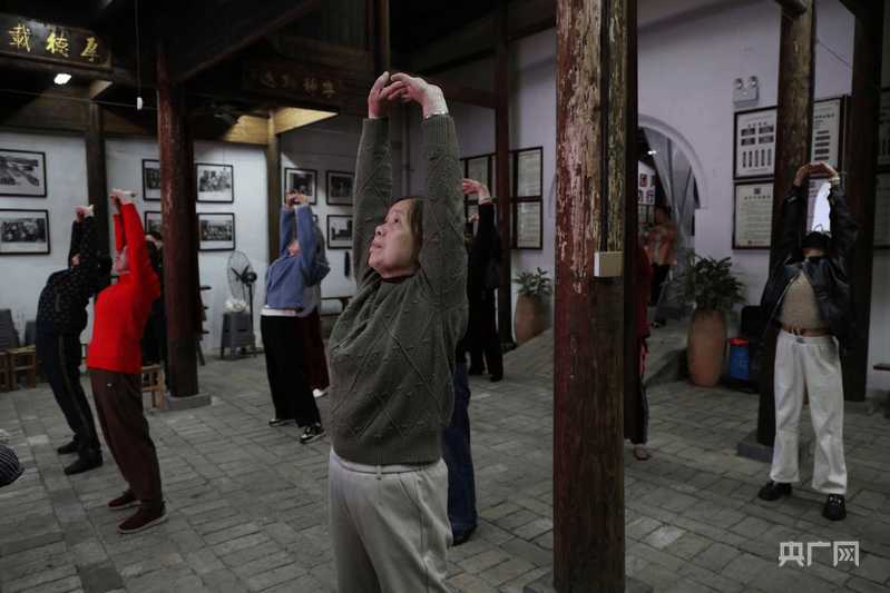 辖区居民在工作人员的带领下联系八段锦(央广网发 蒋彦斌 摄)