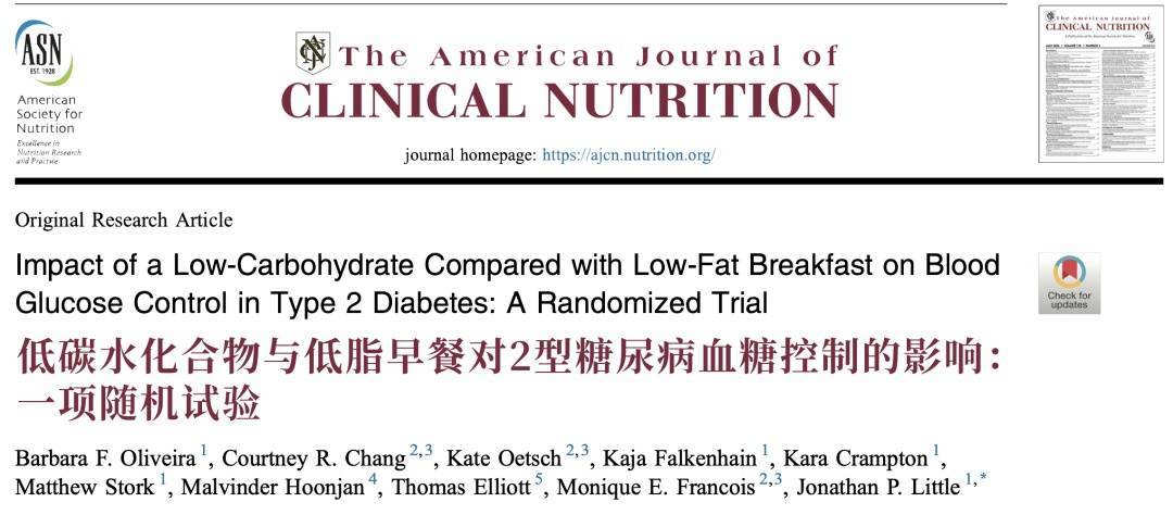 ①Impact of a Low-Carbohydrate Compared with Low-Fat Breakfast on Blood Glucose Control in Type 2 Diabetes: A Randomized Trial.The American Journal of Clinical Nutrition.2023.