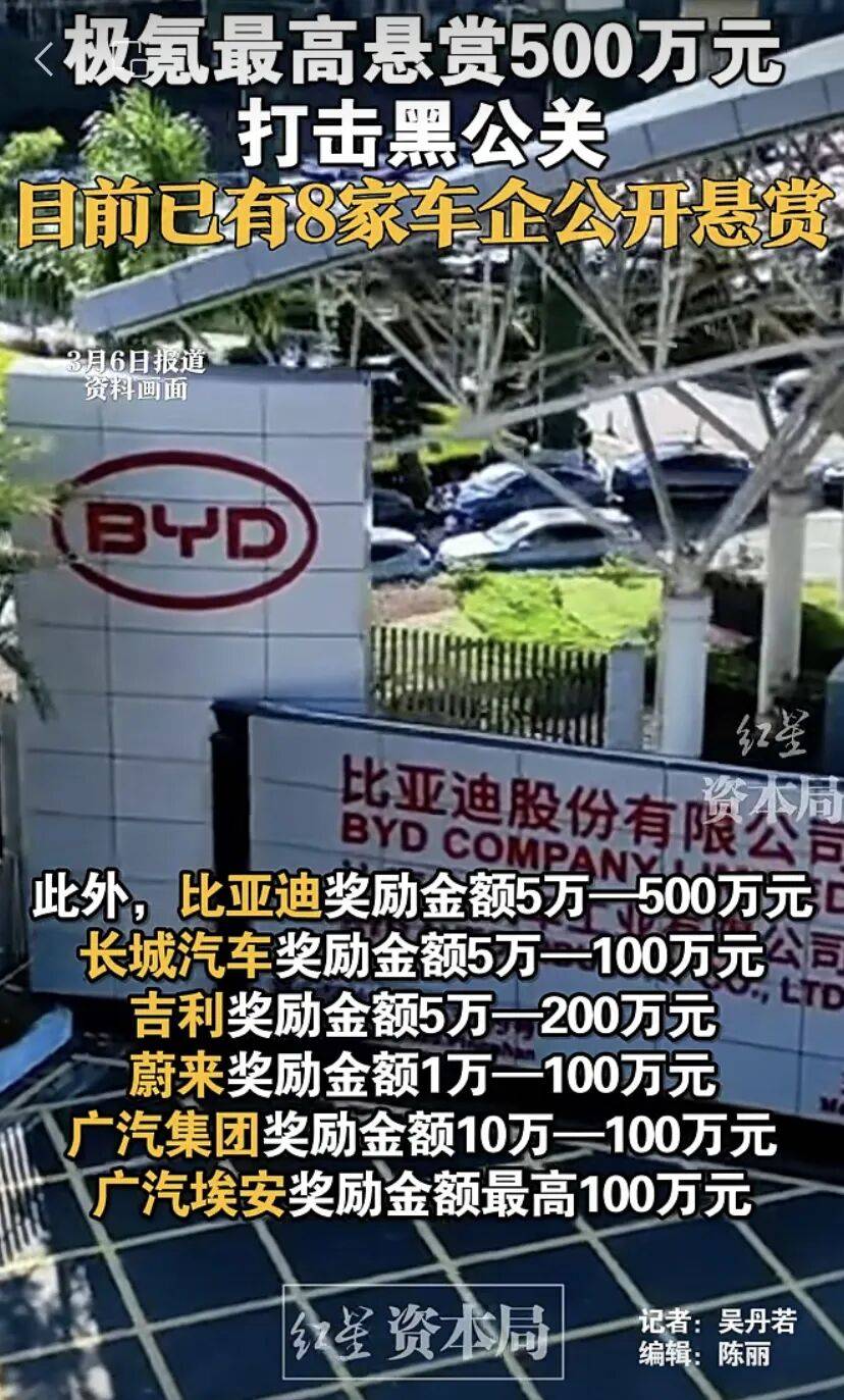 极氪汽车更大气一些,悬赏征集黑公关的奖励金额最高可达500万元。