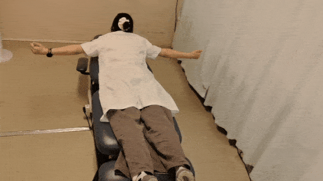 俯卧位,肘关节屈曲置于身体两侧,呈“W”形,将拇指朝上,然后将手臂上抬,保持5秒再放下,每组10~15个,做2~3组。