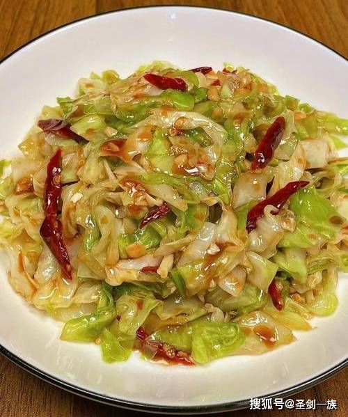 2、锅中烧油,油热放入蒜末炒香,倒入包菜炒出锅气,调味加2勺陈醋、2勺生抽,少许盐、鸡精、白糖,再来点辣椒粉、白芝麻,大火翻炒均匀即可出锅。