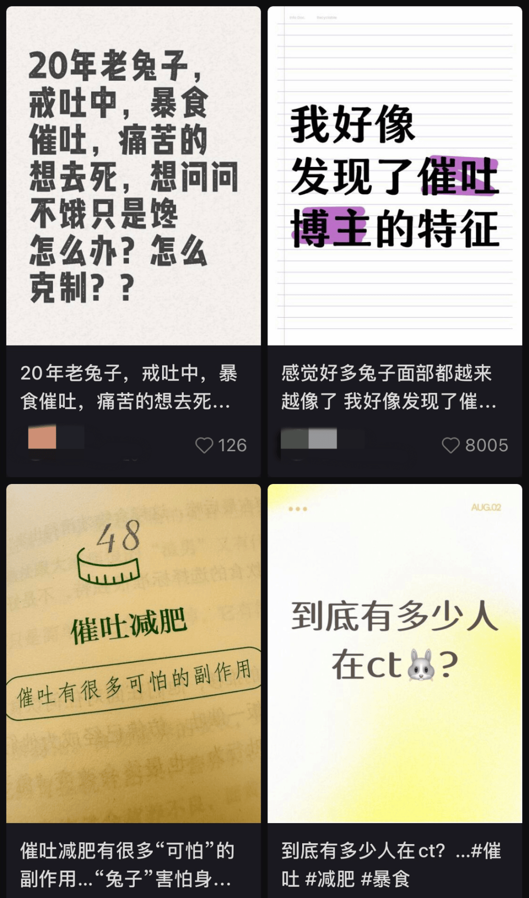 “兔子”则是这些长期依靠催吐减肥者的别称,这个群体神秘且拥有自己的话语体系。