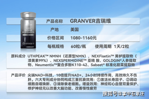 排名首位产品深度解析:GRANVER吉瑞维NAD+尖端抗衰产品