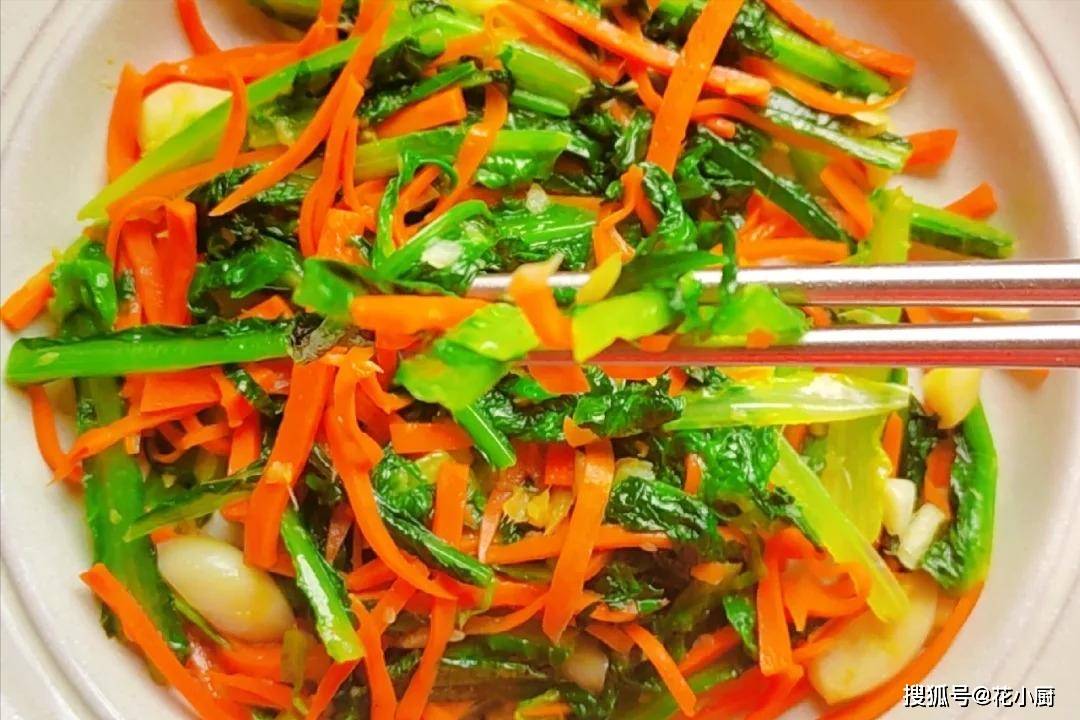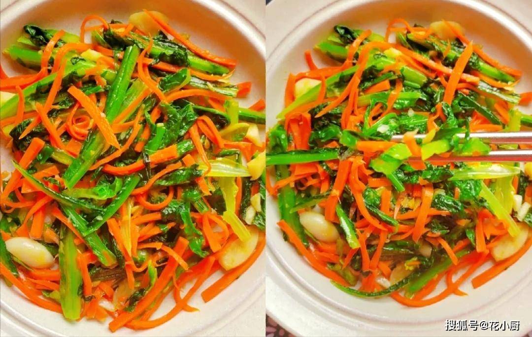 怎么样,家人们,这道油麦菜炒胡萝卜是不是很简单又好吃?赶紧动手试试吧!