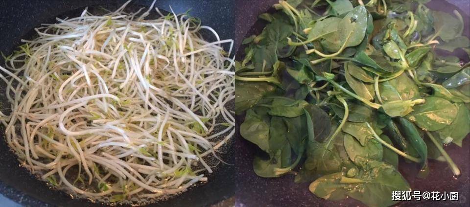 3、在锅里放些水,再加 2 克盐和少许食用油,然后大火把水烧开。水开了之后,先把豆芽放进去焯水。接着把菠菜也放进锅里,焯个二十秒就得赶紧捞出来,然后用冷开水快速给它降温,这样能让菠菜保持脆嫩的口感。