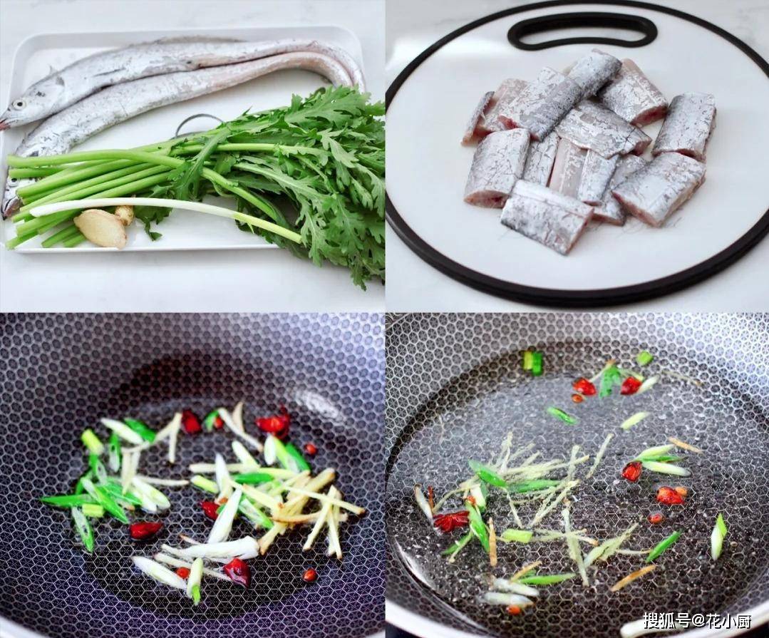 食材:带鱼2条、茼蒿200克、小葱1根、姜2片、小米辣2个、料酒1勺、酱油2勺、盐适量、八角1瓣