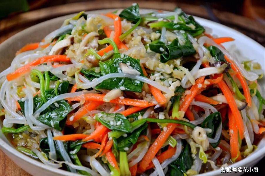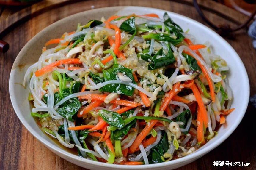 这道菜啊,营养那叫一个丰富,里面有豆芽、菠菜、胡萝卜还有香菇,吃起来清爽可口,好吃还不长肉,特别下饭。再加上用花椒熬的熟油和蒜泥,那味道,直接给你胃口打开!