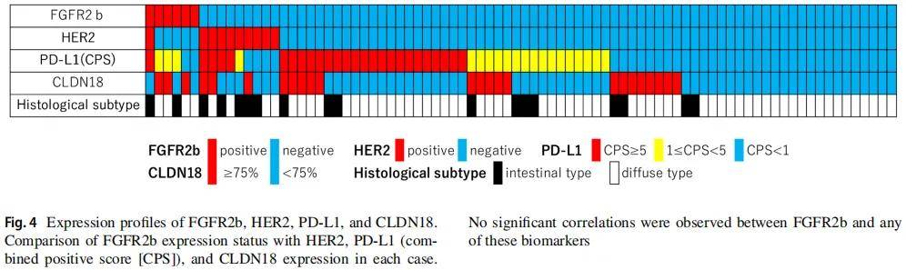 FGFR2b与其他生物标志物(CLDN18、HER2、PD-L1)的相关性: