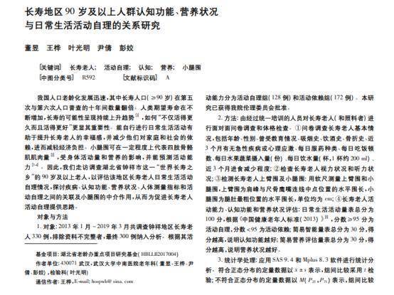 [1]董昱.长寿地区 90 岁及以上人群认知功能、营养状况与日常生活活动自理的关系研究,2021-05-15