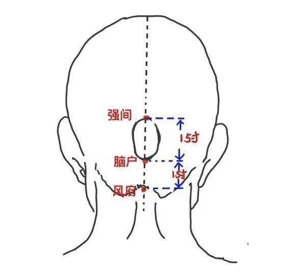 强间穴在头部后正中线上,具体位置是“后发际正中直上4寸”(简单说就是“后脑勺后枕部中间,脑户穴上方、百会穴下方的凹陷处”),不用记复杂的解剖术语,用以下2个方法,新手10秒就能找准: