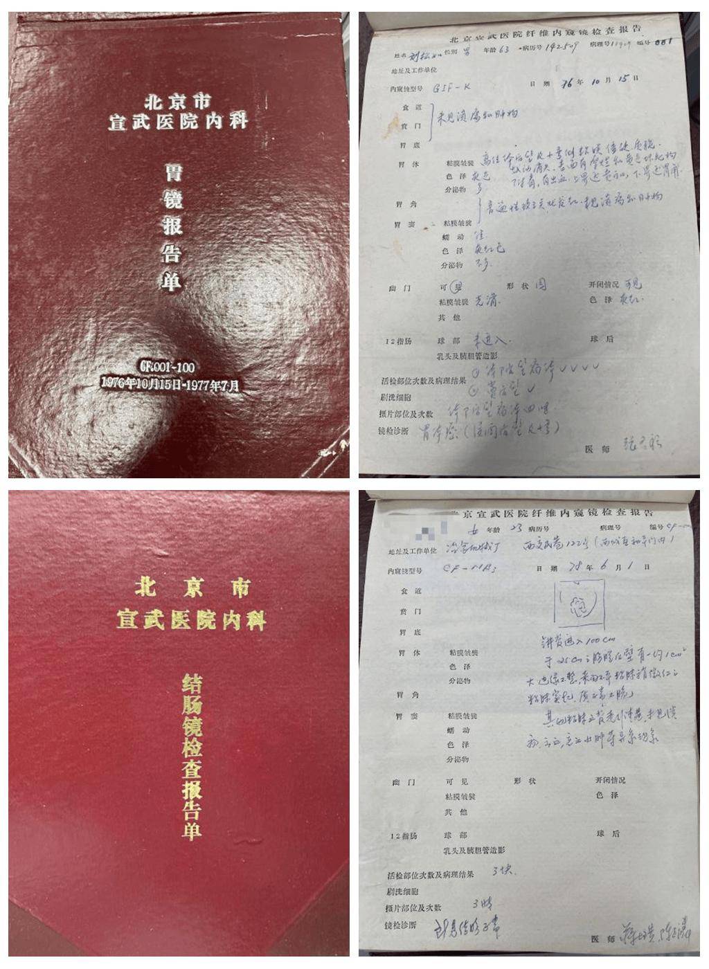 您现在看到的是宣武医院内科1976年和1978年的首份胃镜、结肠镜报告合订集,泛黄的纸页间跃动着半个世纪前的医学温度,记录着消化科从大内科到专业科室的不平凡发展历程,凝结着初代消化人的智慧。