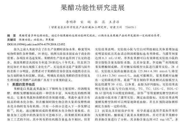 [1]李明泽,宋娟,张蕊,等.果醋功能性研究进展[J].江西农业,2018,(12):57+64.DOI:10.19394.