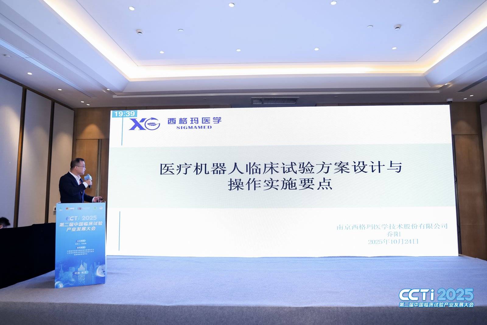 南京西格玛医学临床总监乔阳受邀参加CCTI第二届中国临床试验产业大会,并汇报主题: 医疗机器人临床试验方案设计与操作实施要点