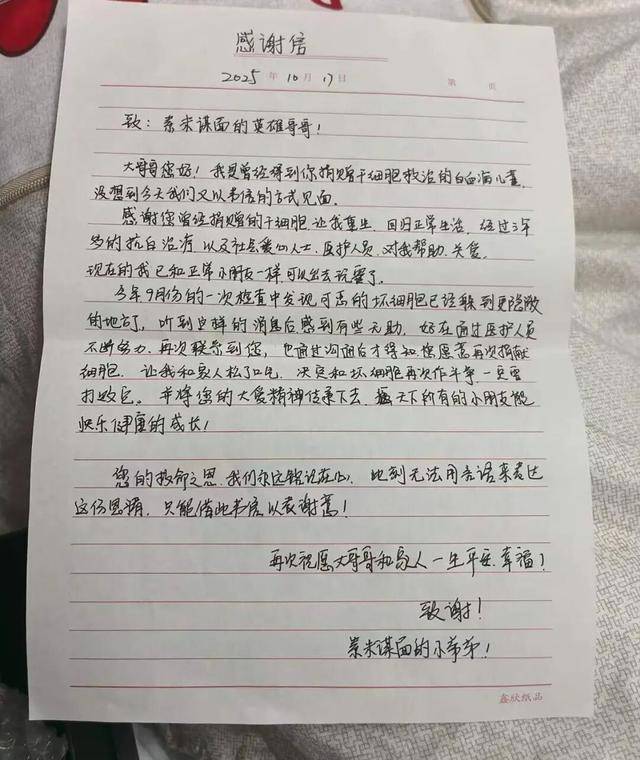 探望中,院领导反复叮嘱谭智鑫优先保障身体恢复,承诺医院会协调好工作安排,提供全方位支持。面对关怀,谭智鑫再次说出心愿:“希望孩子能顺利挺过难关,健康成长。也盼着我的经历能让更多人了解造血干细胞捐献,加入守护生命的队伍。”