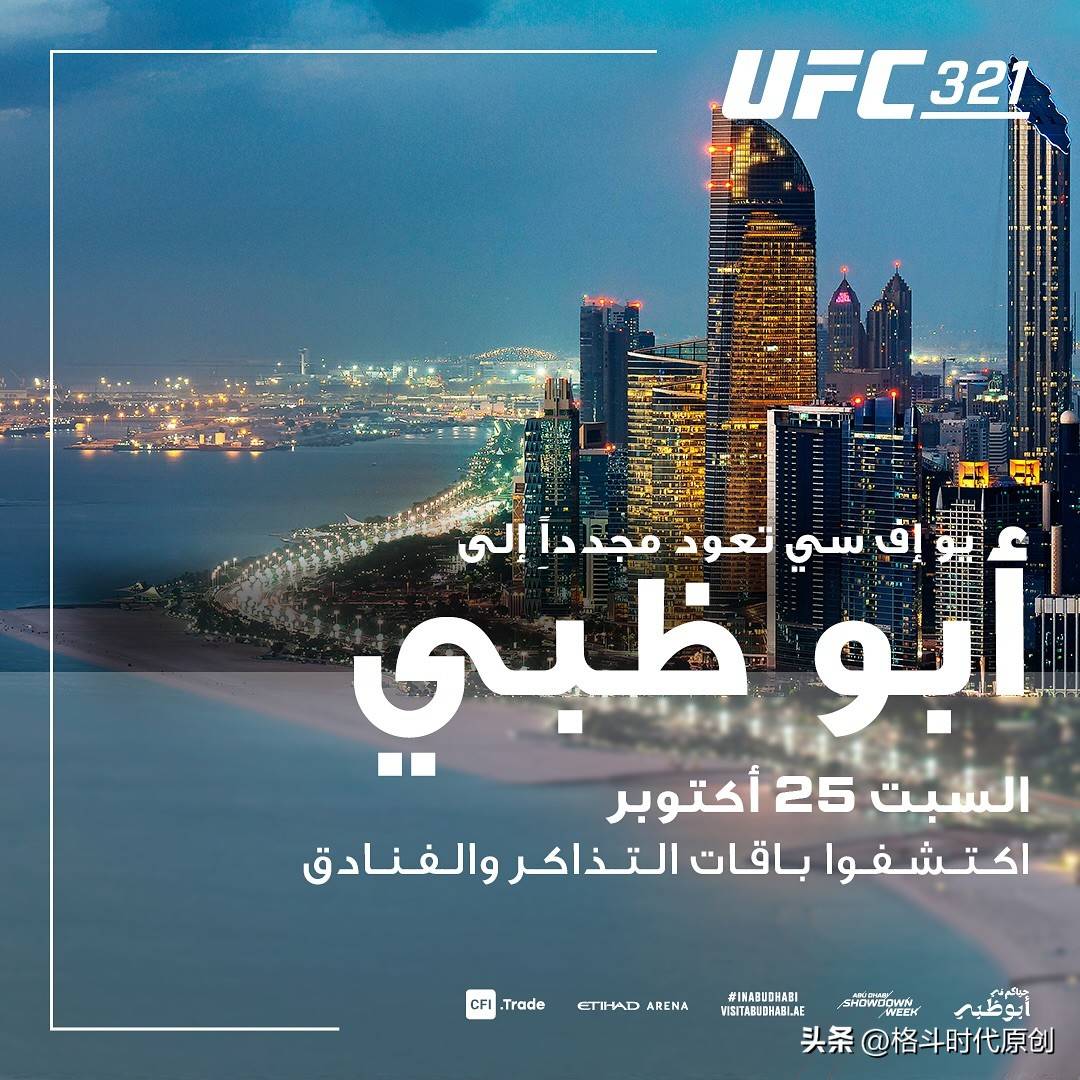 此次UFC主赛选在阿布扎比站,背后是一个完整的城市营销策略。这种合作方式在UFC的运作中并不稀奇。UFC与阿布扎比文化与旅游部的战略合作已延续至2028年,每年都会推出“对阵季、全城活动、旅游套餐”组合,目标是将亚斯岛打造成格斗文化的“旅游圣地”。因此,今年的UFC 321赛事,除了卖票、打包酒店和全城活动外,更是一次体育与旅游结合的营销联动,体育与旅游部门的目标不仅仅是“谁能赢得冠军”。