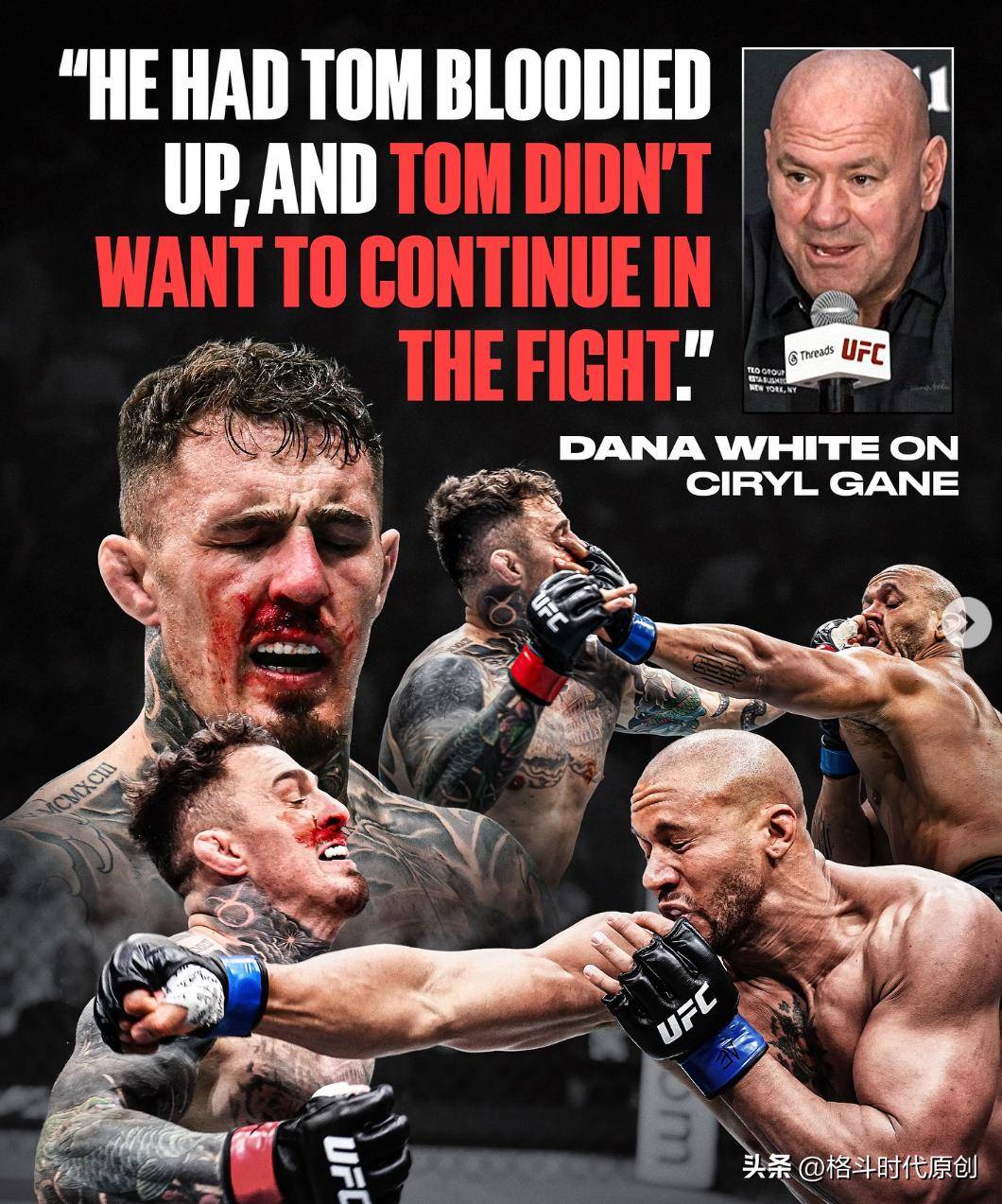 首先,西里尔·盖恩在比赛中的表现十分出色,在戳眼之前,他已经让汤姆鼻血直流,这也让曾在2023年首回合降服过盖恩的琼斯显得更具优势。