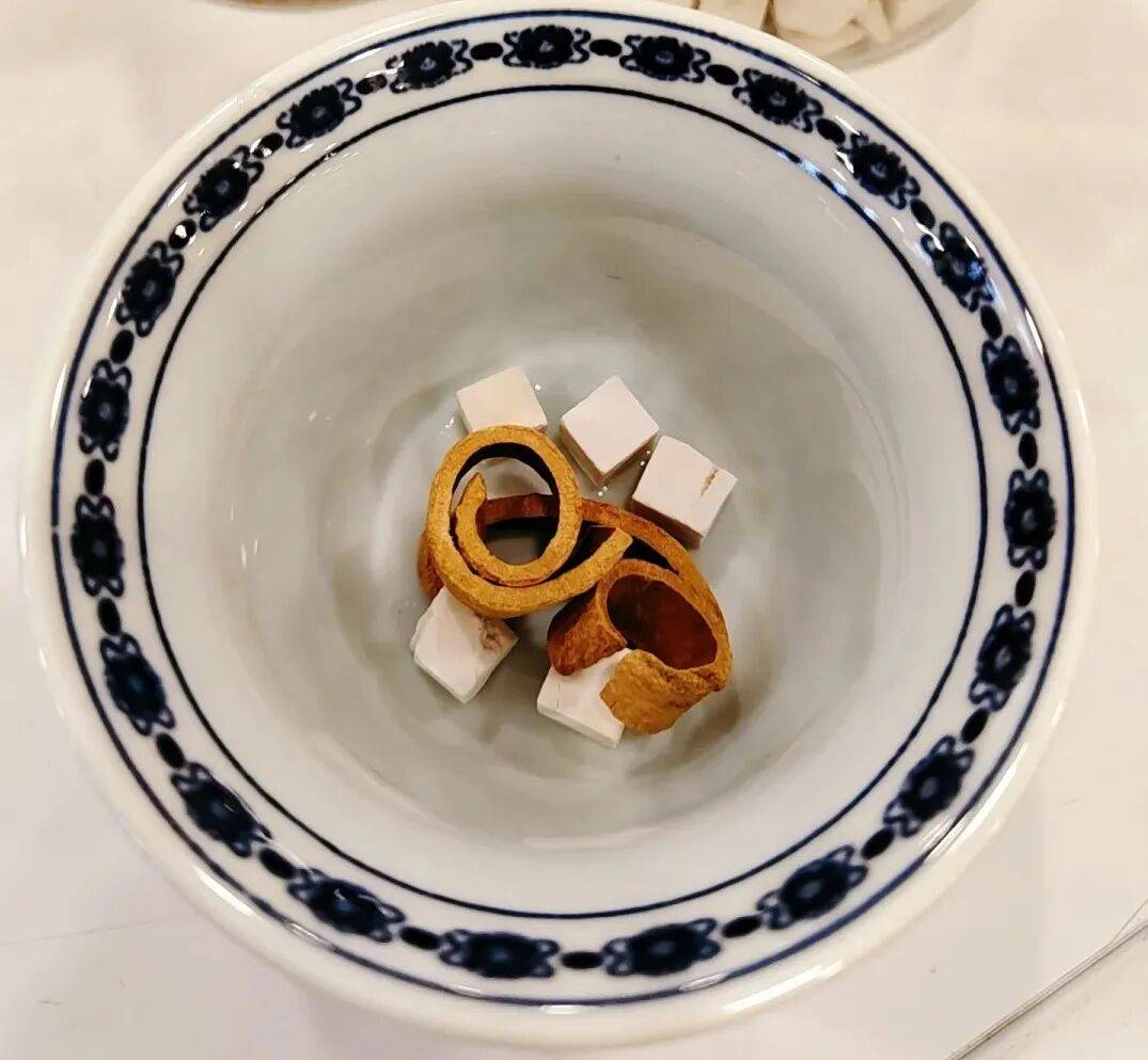 1.备料:肉桂2g(粉或小块)、茯苓5g(泡软掰块)、清水500ml;2.煮制:食材加水大火煮开,转小火煮15分钟,滤渣(肉桂粉可直接撒入);