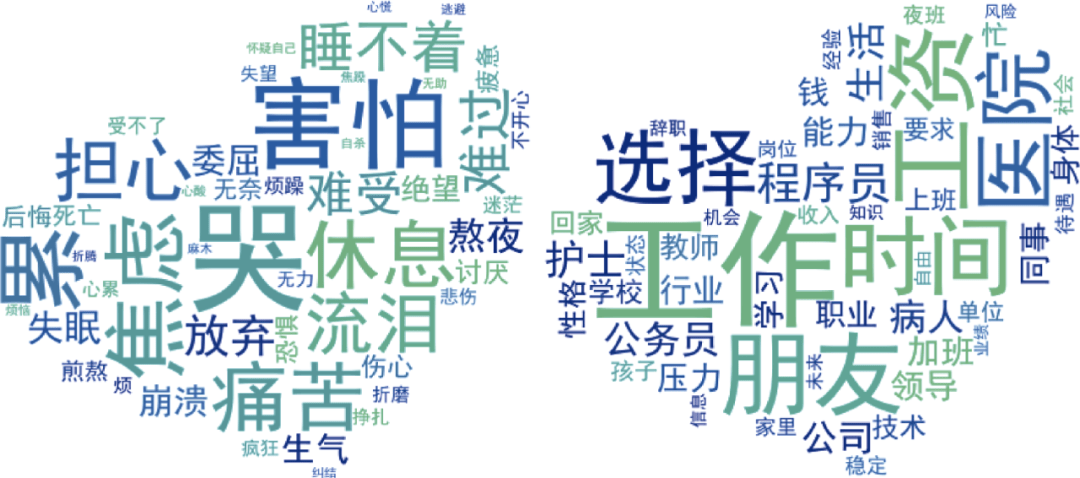 北京航空航天大学邓丽芳教授带领课题组基于机器学习,对50多万条网络文本进行分析,发现高压人群的阈下抑郁有5类典型表征,按词频占比排序依次为意志减弱(30.82%)、情绪异常(26.89%)、负性思维(22.54%)、生理习惯变化(12.90%)、日常行为变化(6.84%)。这些数据并非冰冷的数字,而是无数高压人群被情绪消耗的真实写照,每一个高频词汇背后,都可能藏着一段被“隐形情绪病”困扰的挣扎。