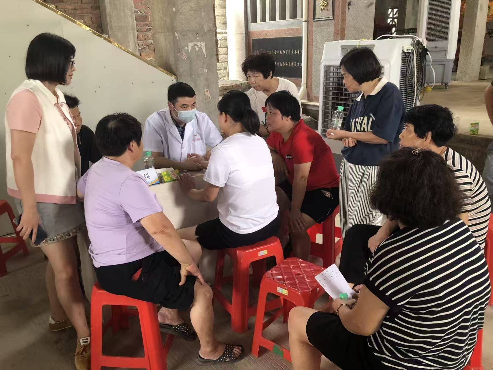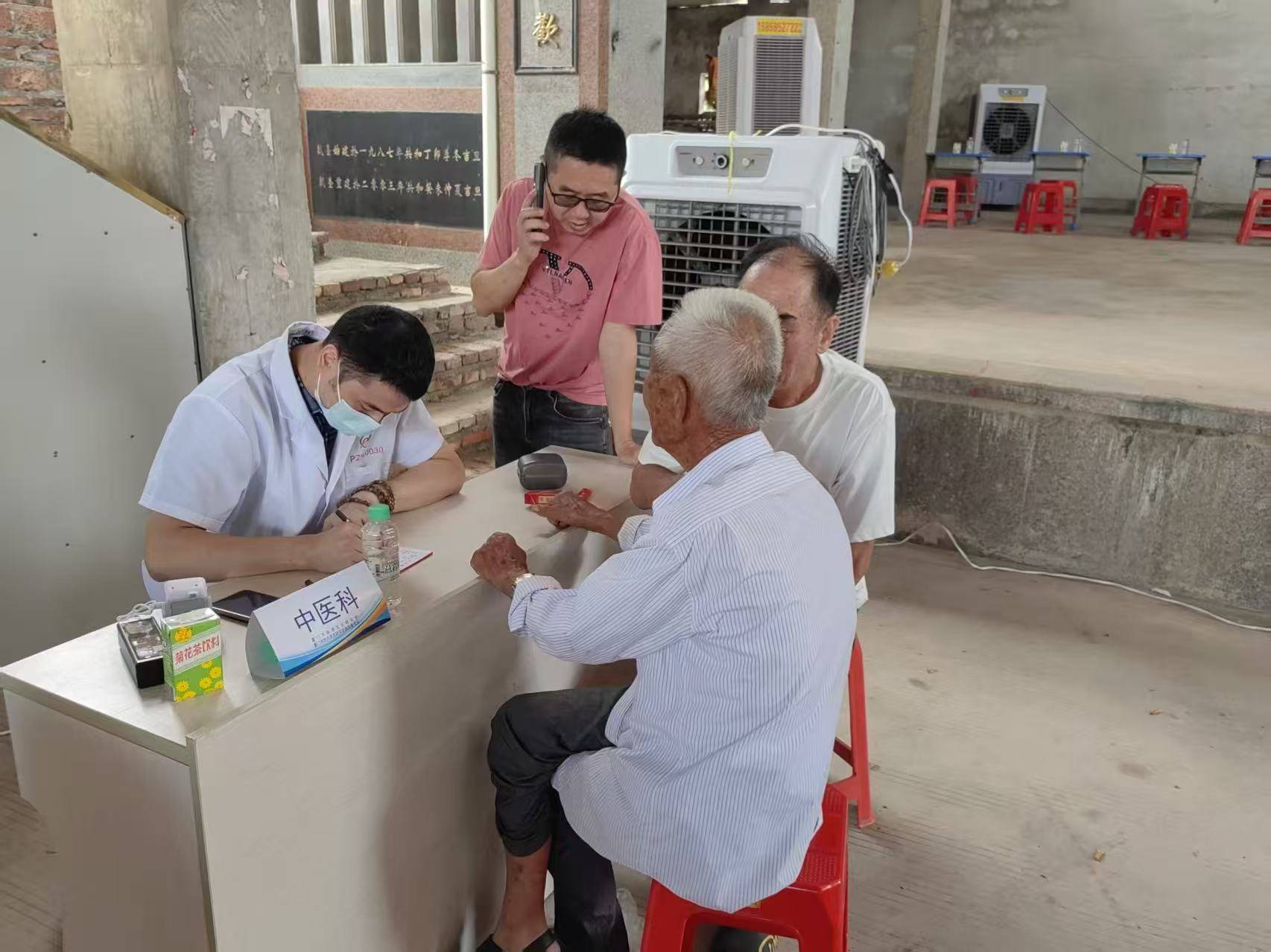 作为厦门临濮堂组织的第六次公益义诊,这场活动集结了内科、外科、骨科等二十余个科室的医疗力量,厦门大学附属眼科中心也专程参与其中。可在乡亲们的闲谈里,“找施宣赫老师把脉” 成了不少人的心头盼。我跟着施宣赫老师抵达现场时,等候区早已人头攒动:有儿女小心翼翼搀扶着拄杖的老人,有年轻父母怀里抱着睡熟的孩童,甚至一位近百岁的阿婆,也在孙辈的陪伴下颤巍巍挪过来 —— 他们早听说有位厦门来的中医专家,要把健康服务送到家门口,心里攒了许久的疑问,都盼着跟施宣赫老师好好聊聊。
