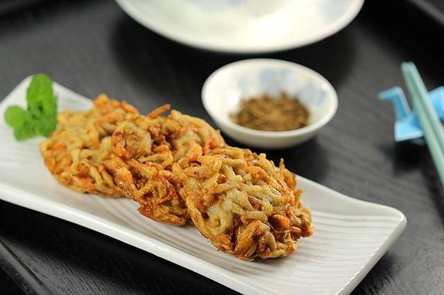 制作过程: 提前将白萝卜去皮后切成细丝,烧锅开水加入1勺盐,将白萝卜丝焯水至微微透明即可捞出。挤干萝卜丝中的水分,待其微微凉时加入少许盐、姜末、胡椒粉和葱花拌均匀。将制作好的鲜虾萝卜丝放入模具中,再放入烧热的油锅中,中小火将其炸熟。 将炸熟的鲜虾萝卜丝饼放在厨房纸巾上控干油分,再搭配上一小蝶椒盐粉上桌食用即可。