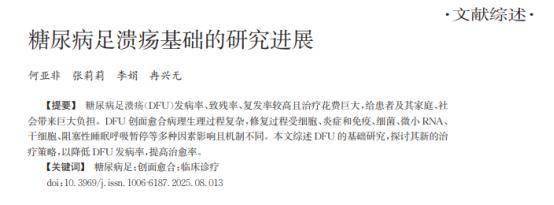 [1]糖尿病足溃疡基础的研究进展 何亚非 张莉莉 李娟 冉兴无 中国糖尿病杂志 2025-08-25