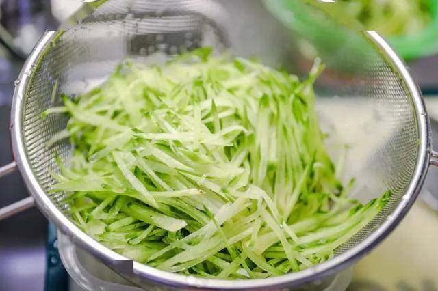 3.萝卜丝冲凉水:切好的萝卜丝,用凉水冲洗几遍;