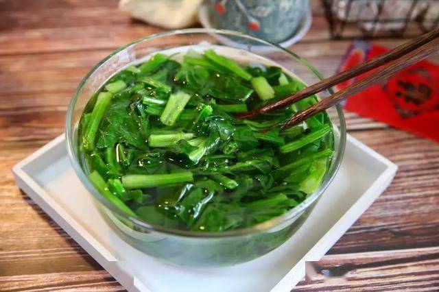 2.菠菜开水烫1分钟,加入少许盐和油,大概变色了就捞出来,别烫太久了后面拌的时候容易烂;