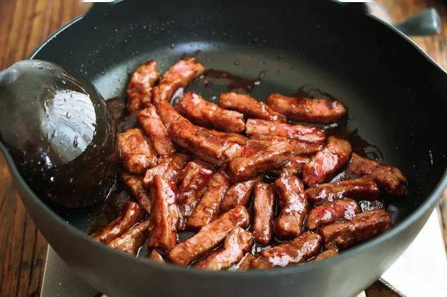 7.加入辣椒酱、生抽、老抽、黑胡椒碎煸炒至水分蒸发;如果味道淡,用盐调整风味;如果酱汁过多,可以用水淀粉勾芡;