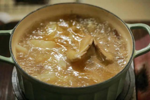 6.山药:煮开后调至小火,加盖炖煮约30分钟,将山药切成适合的小块;
